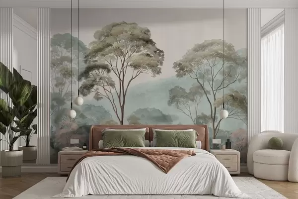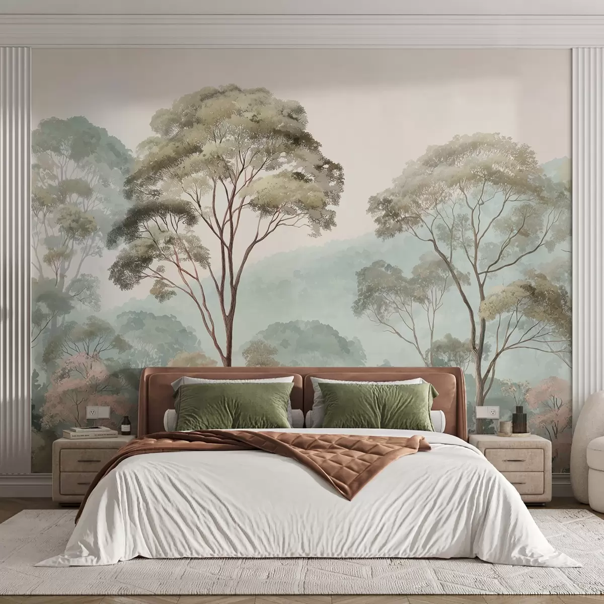 Fototapeedid Uduvihmane hommik metsas akvarellistiilis Nr w09405