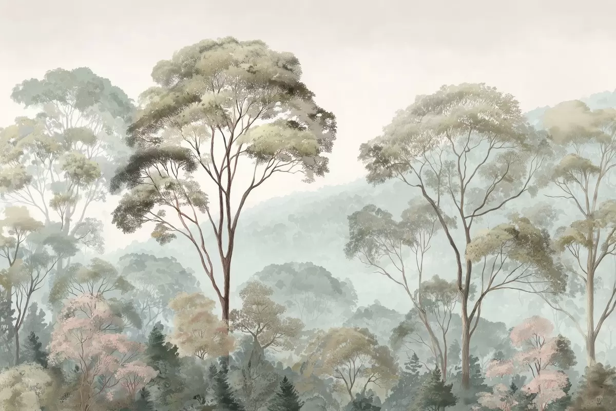 Fototapeedid Uduvihmane hommik metsas akvarellistiilis Nr w09405