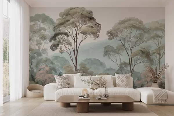 Fototapeedid Uduvihmane hommik metsas akvarellistiilis Nr w09405