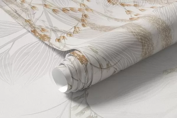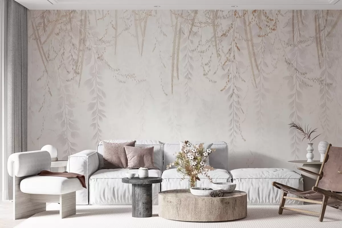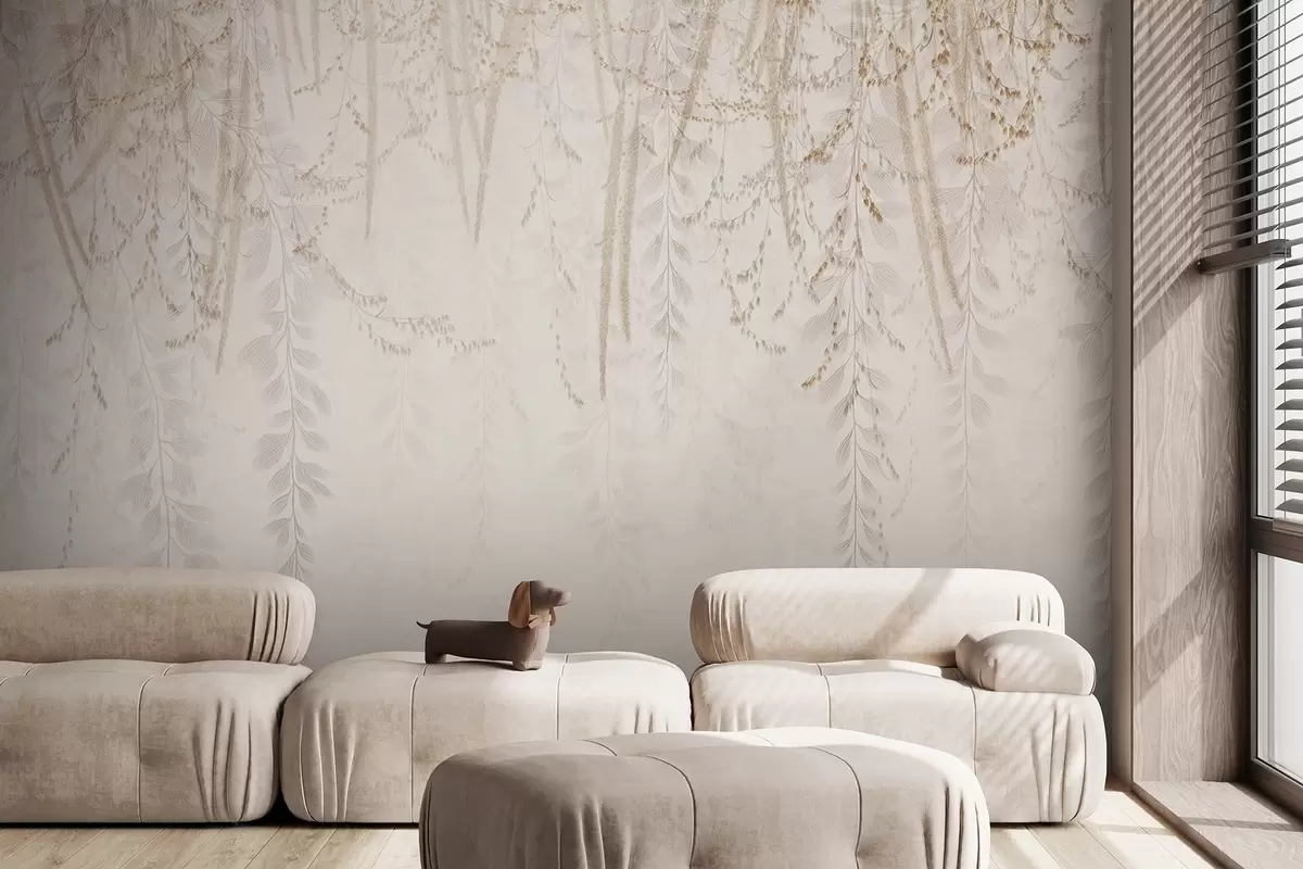 Fototapeedid Kerged rippuvad lehed ja oksad beežides toonides Nr w09433