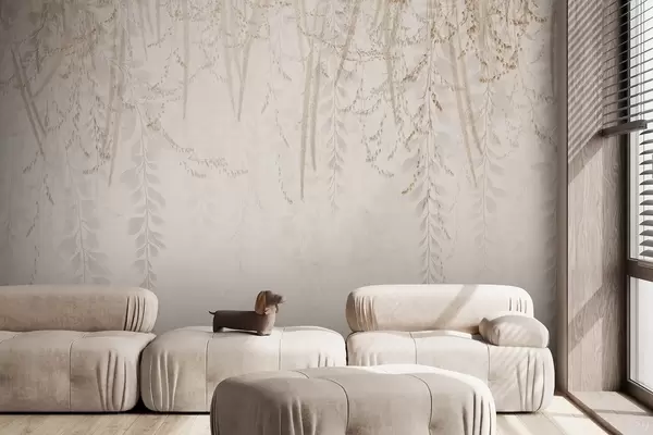 Fototapeedid Kerged rippuvad lehed ja oksad beežides toonides Nr w09433