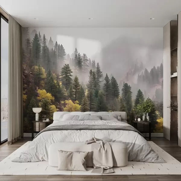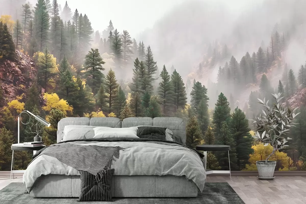 Fototapeedid Atmosfääriline udune männimets mägedes Nr w09463