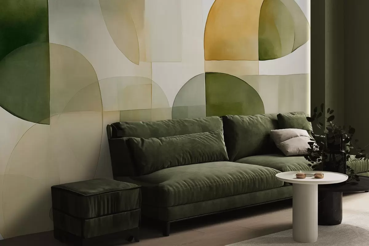 Fototapeedid Abstraktsed tekstuuriga kujundid rohelistes ja kollastes toonides, vaoshoitud toonid, minimalistlik kompositsioon, neutraalne taust Nr w09467