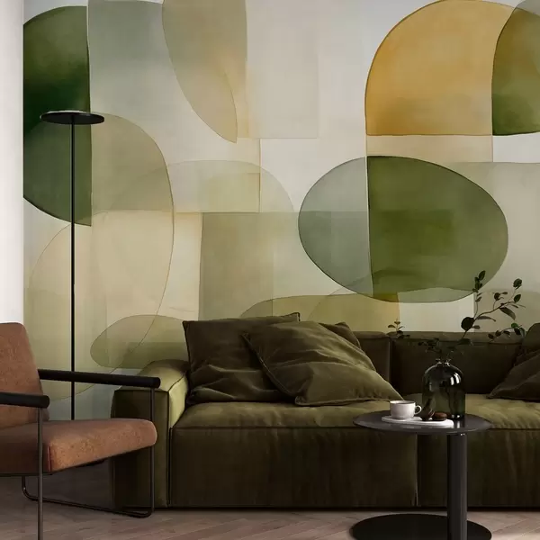 Fototapeedid Abstraktsed tekstuuriga kujundid rohelistes ja kollastes toonides, vaoshoitud toonid, minimalistlik kompositsioon, neutraalne taust Nr w09467