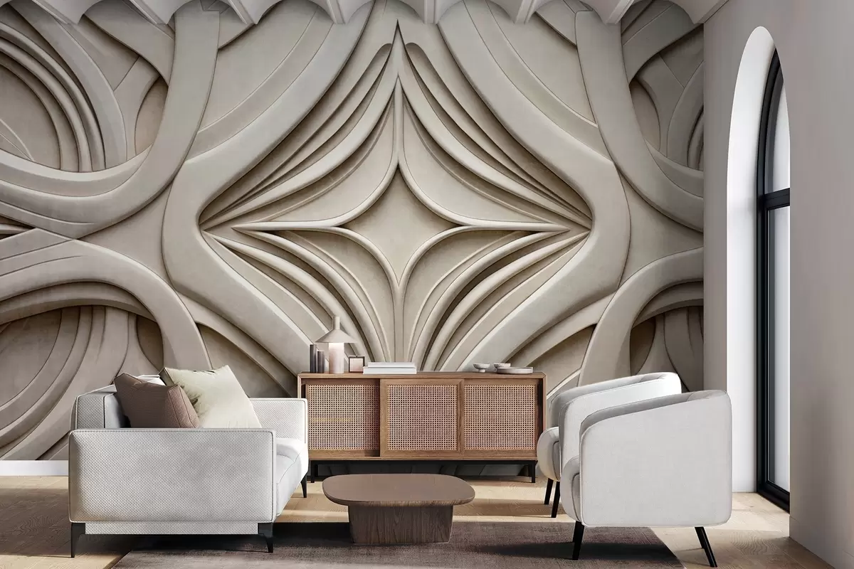 Fototapeedid Abstraktne sümmeetriline tekstuuriga geomeetriline trükis, helebeež värv, art deco stiil, keerukad detailid Nr w09473