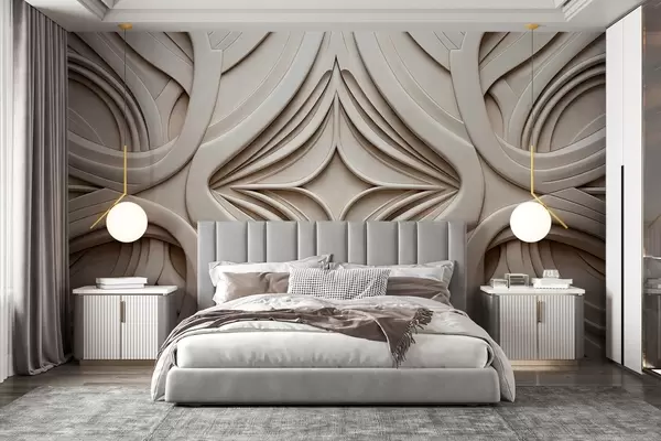 Fototapeedid Abstraktne sümmeetriline tekstuuriga geomeetriline trükis, helebeež värv, art deco stiil, keerukad detailid Nr w09473