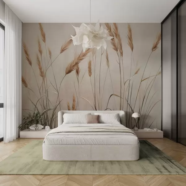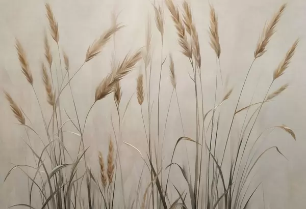 Fototapeedid Nisu tekstuuriga põld kollaste viljapeadega, beež taust, loomulik valgustus, soojad toonid, detailseid pintslitõmbed Nr w09493