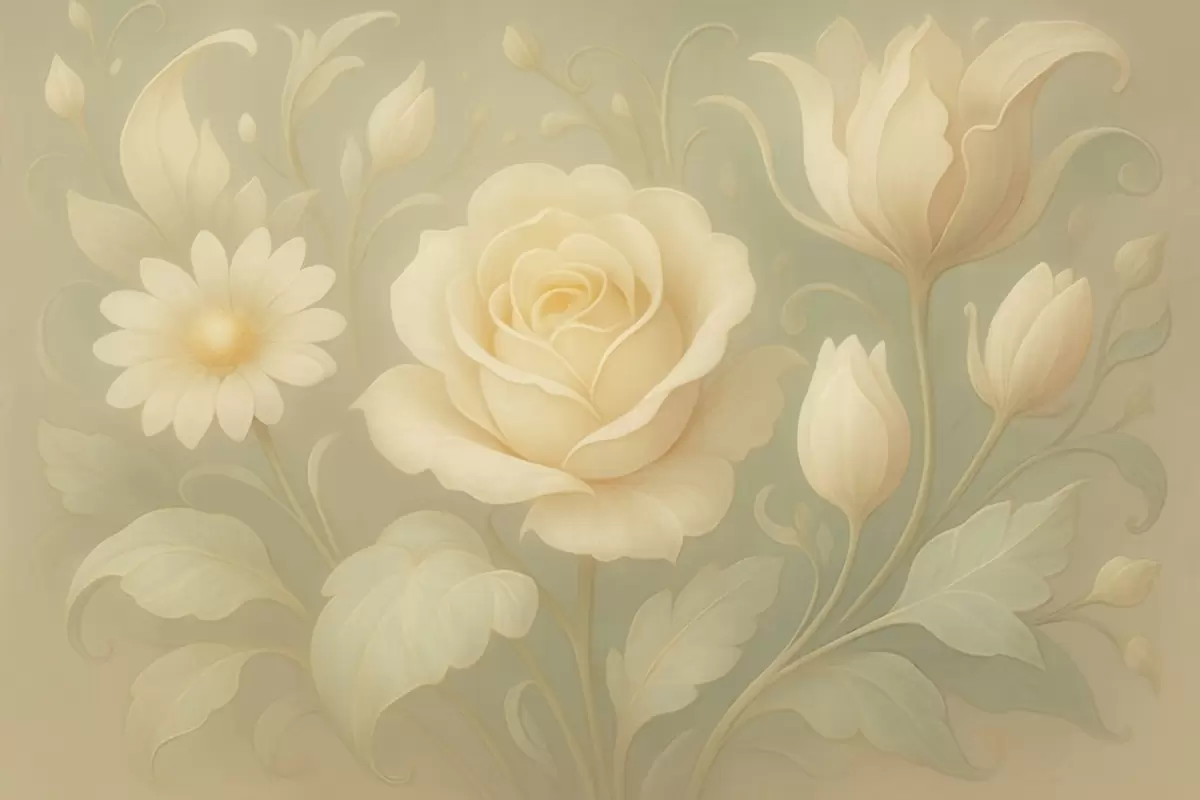 Fototapeedid Õrn vintage kompositsioon beežide roosidega helerohelisel taustal Nr w09499