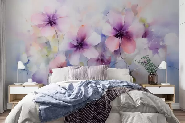 Fototapeedid Kevadised akvarelllilled roosa ja lilla toonides Nr w09502