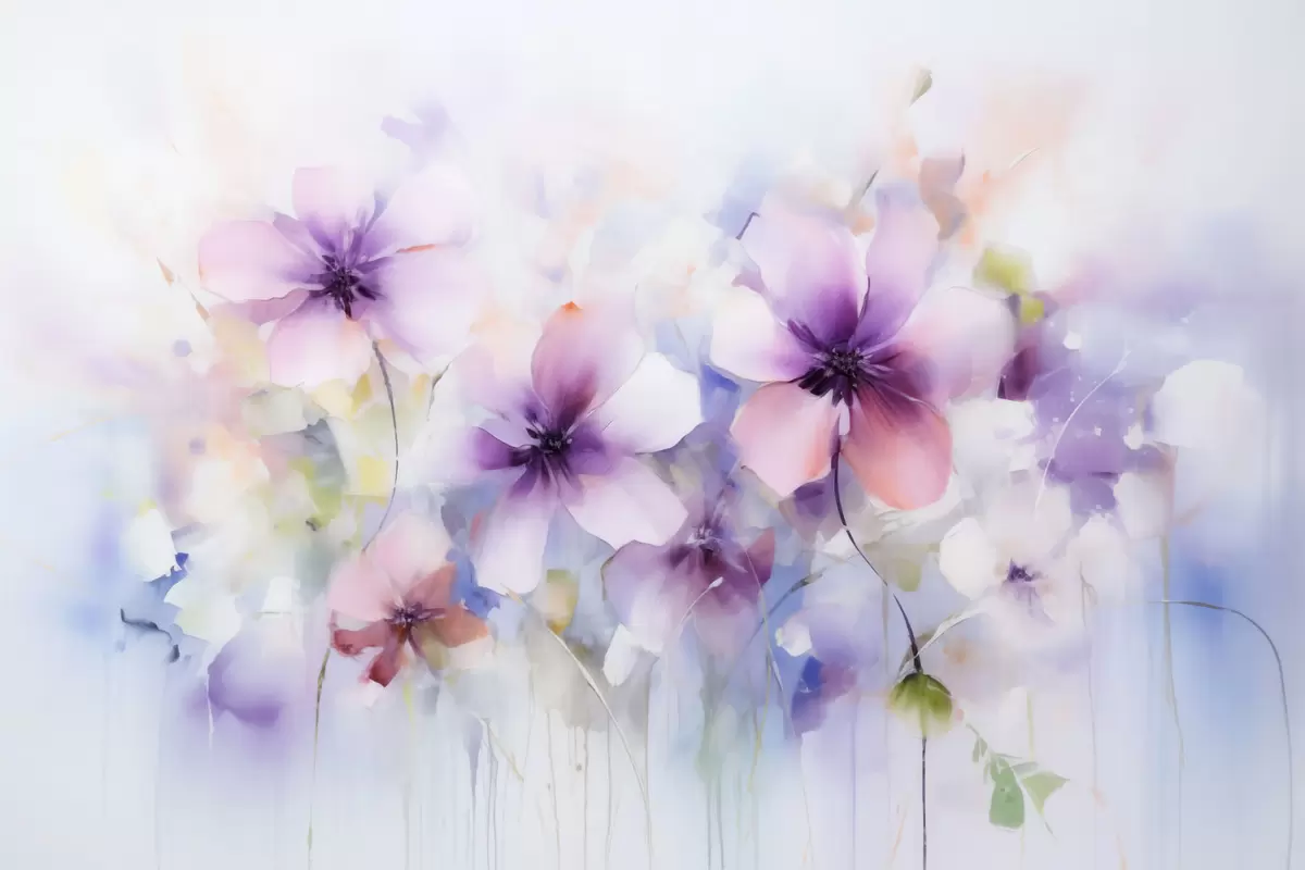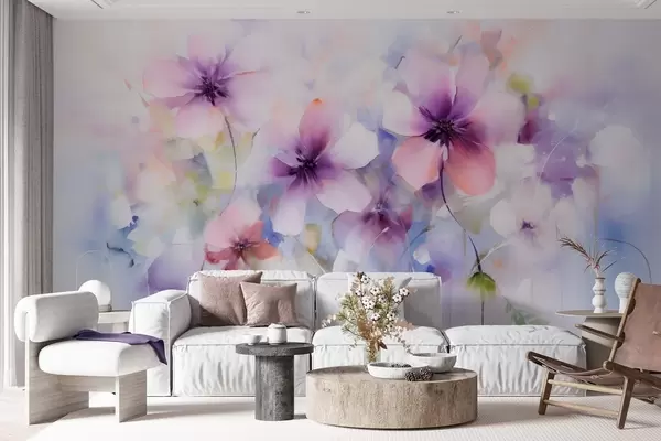 Fototapeedid Kevadised akvarelllilled roosa ja lilla toonides Nr w09502