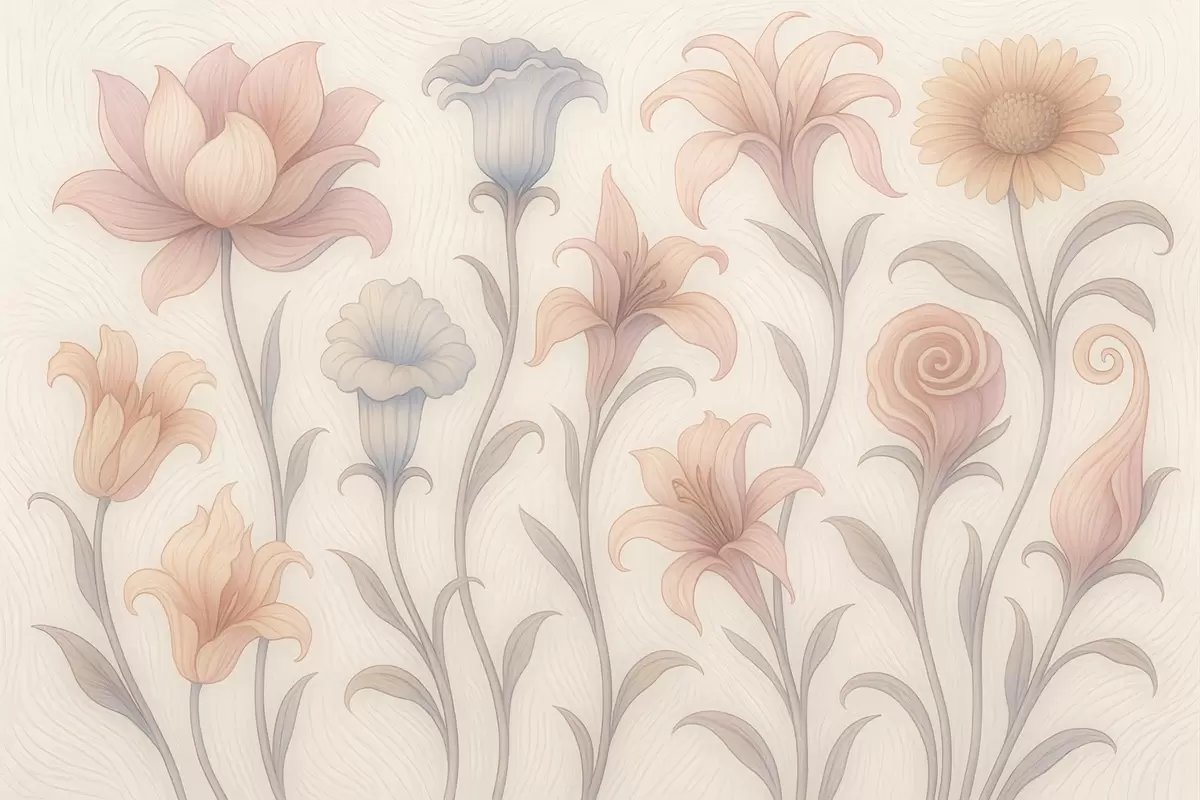 Fototapeedid Õrn lillekompositsioon pastelltoonides Nr w09503