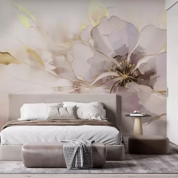 Fototapeedid Sinine lill kollaste aksentidega abstraktses pintslitõmbete stiilis Nr w09505