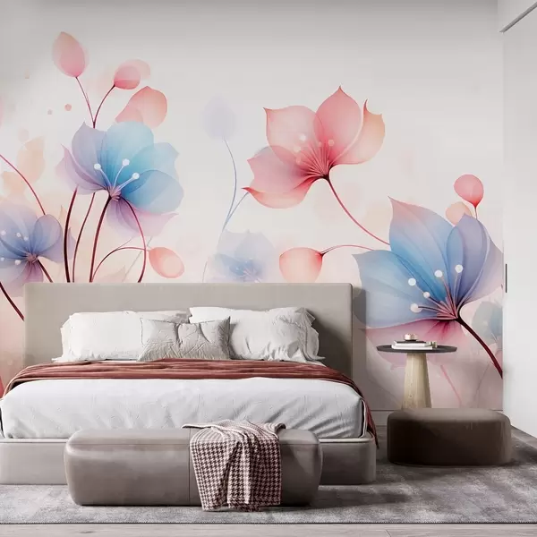 Fototapeedid Õrnad roosa-sinised lilled — õhuline taimestik valgel akvarelltaustal Nr w09507