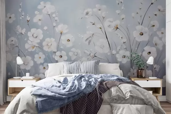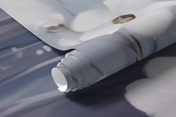 Fototapeedid Valged lilled sinise taeva taustal õlimaalistiilis Nr w09516