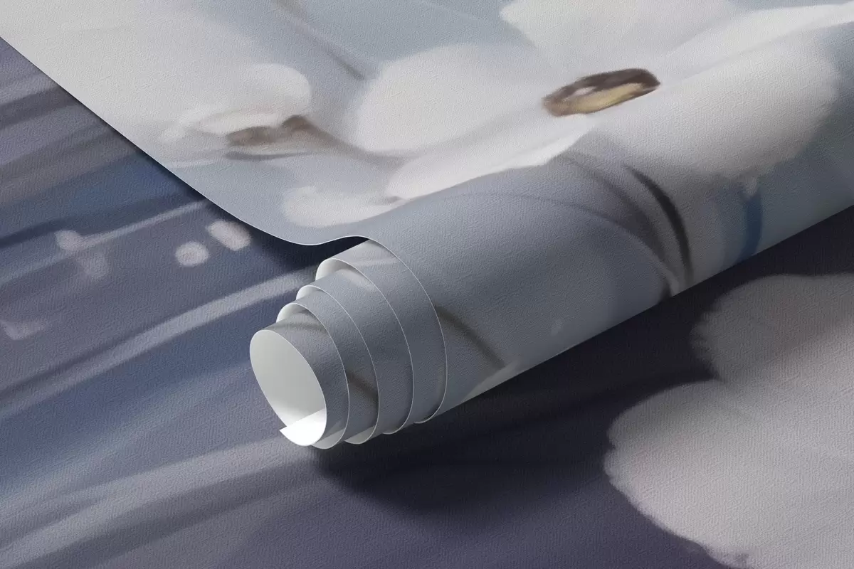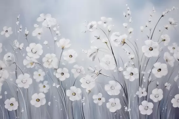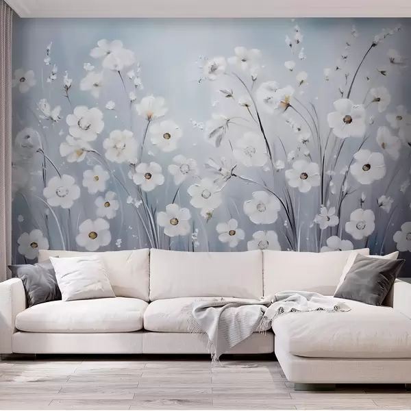 Fototapeedid Valged lilled sinise taeva taustal õlimaalistiilis Nr w09516