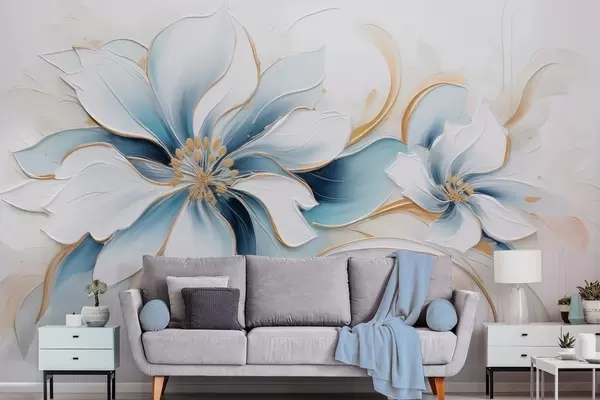 Fototapeedid Maalikunstiline abstraktsioon siniste lilledega õlimaalistiilis Nr w09524