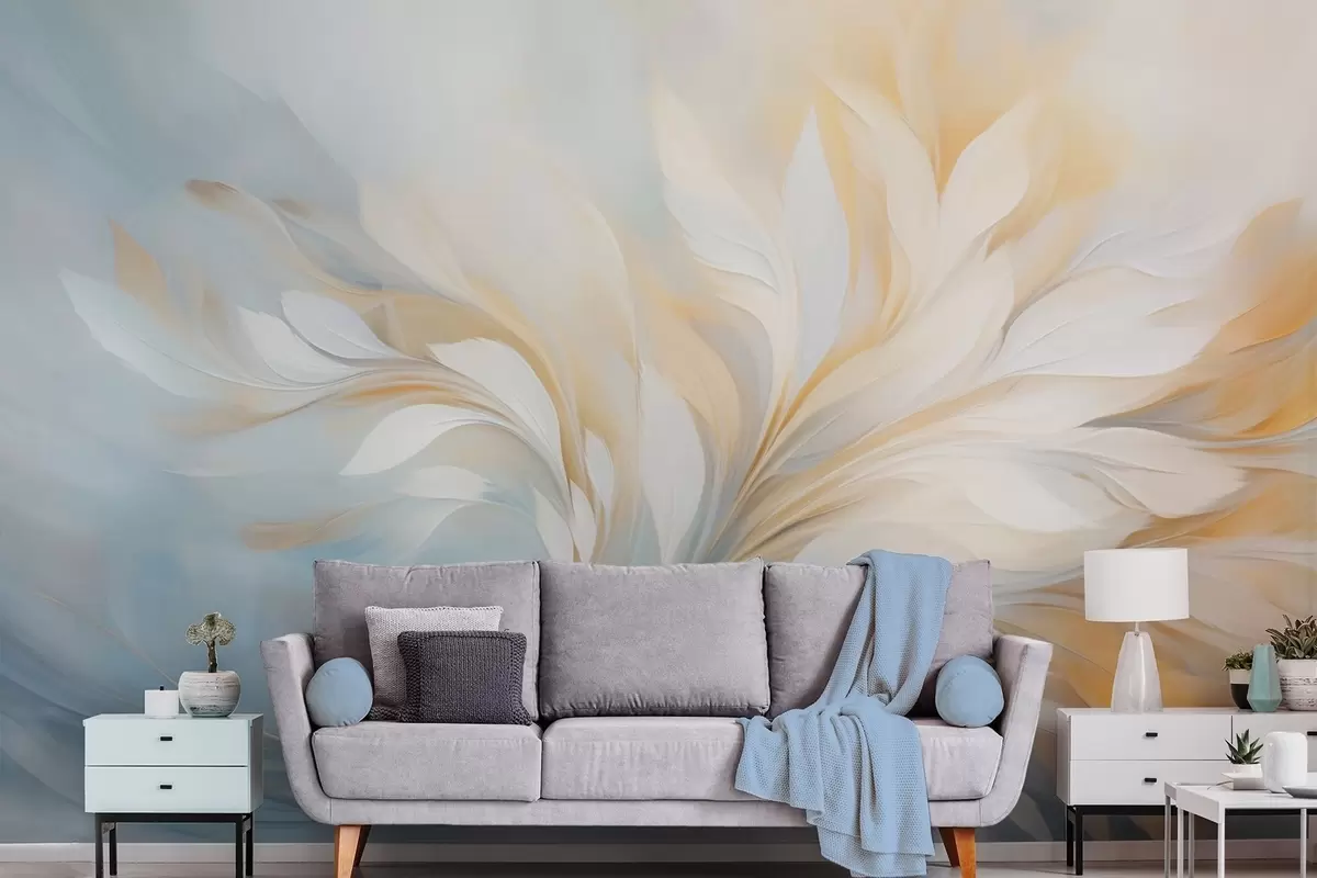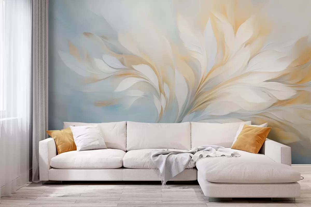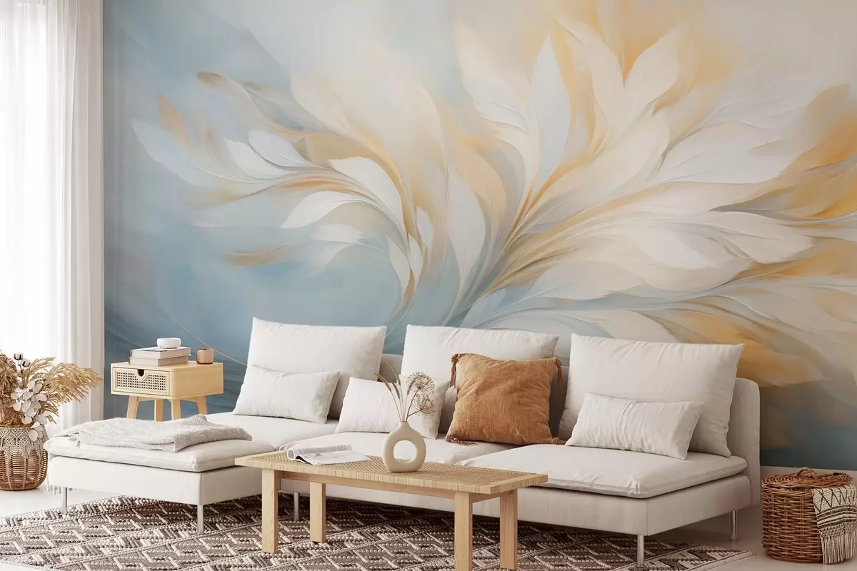 Fototapeedid Kollaste ja siniste toonidega sileda sulgja kujuga abstraktne kompositsioon Nr w09525