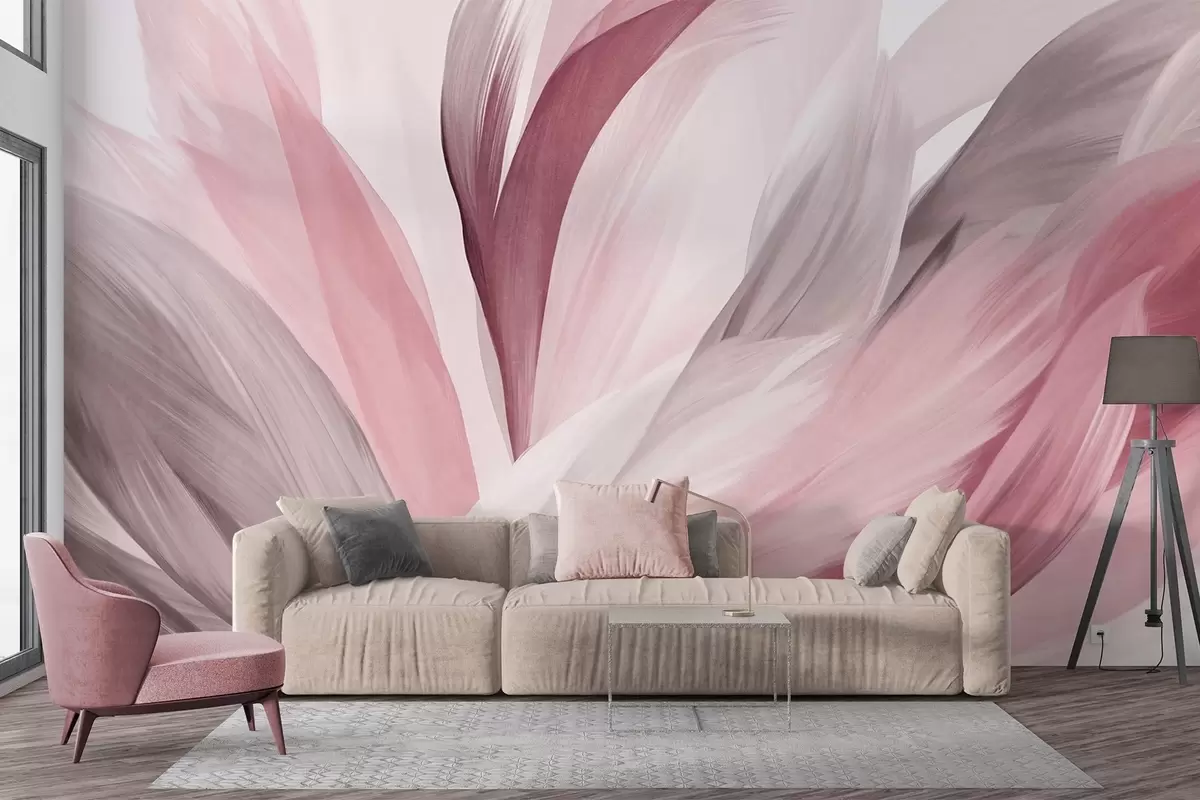 Fototapeedid Abstraktsed tekstuuriga suled roosa, valge ja halli värvitoonides ning erinevates varjundites, mis kattuvad valgel taustal. Nr w09531v2