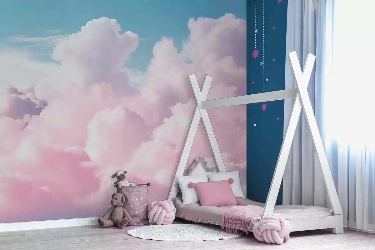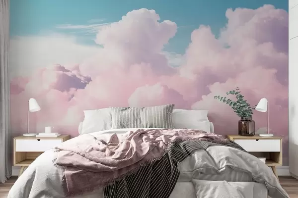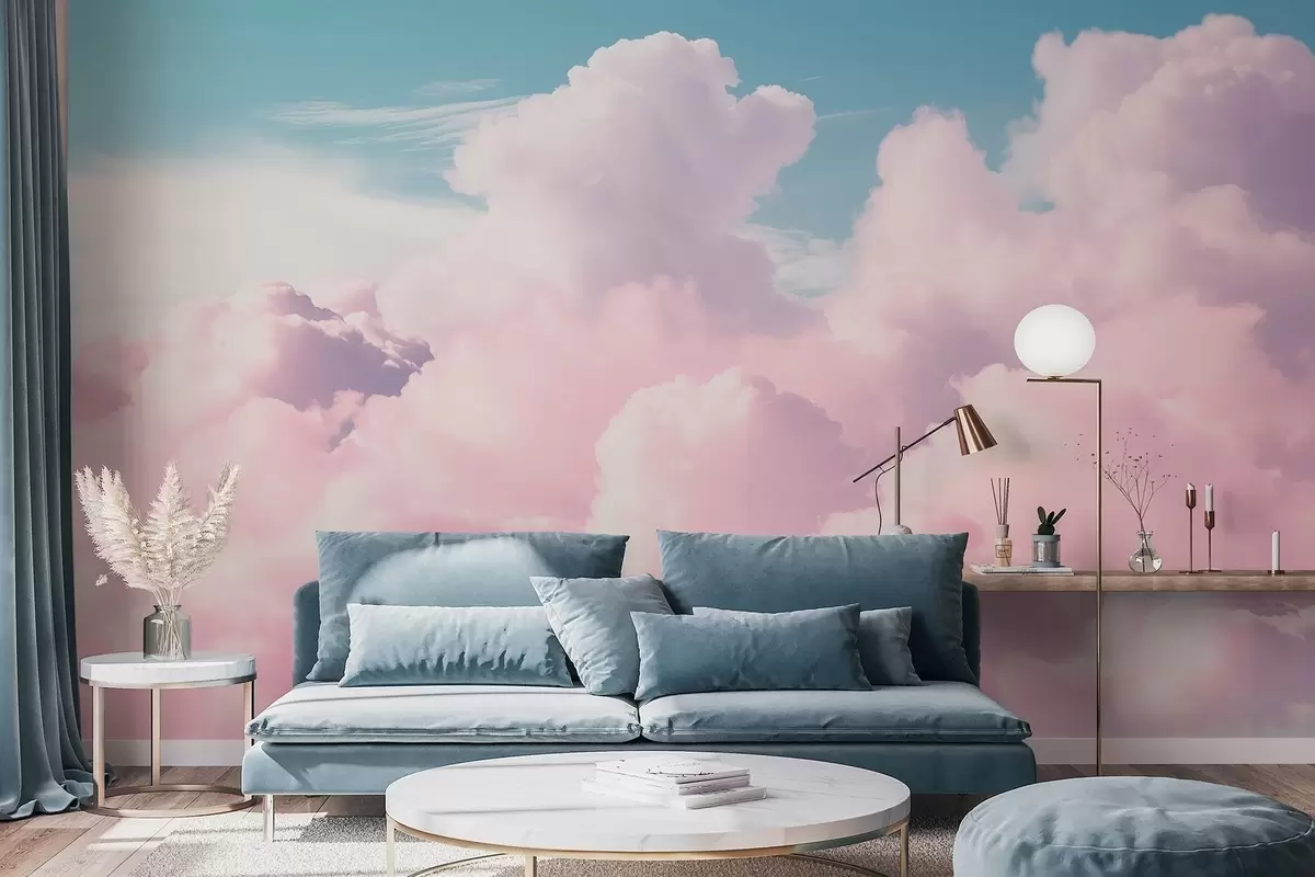 Fototapeedid Pehmed õhulised roosad pilved sinisel taevas Nr w09569