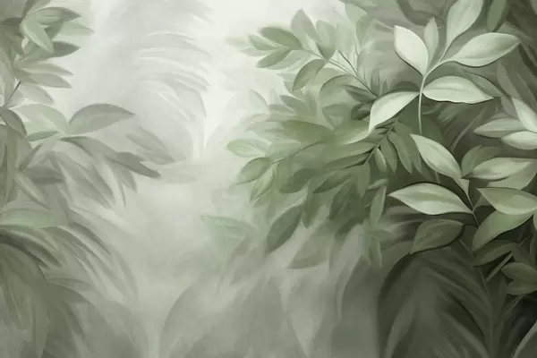 Fototapeedid Pruunid ja beežid lehed pehme, ähmase tekstuuriga lehestikuga, maalilises stiilis nähtavate pintslitõmmetega. Nr w09584