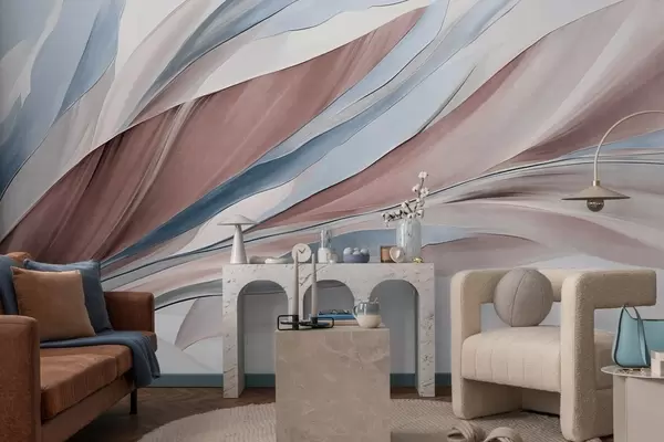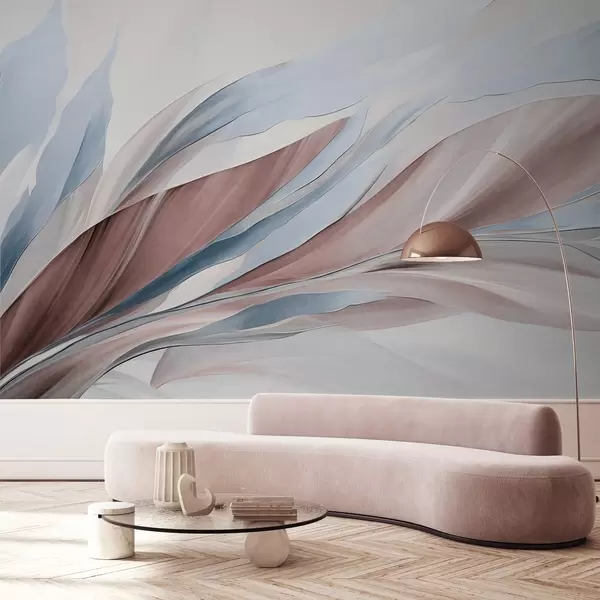 Fototapeedid Abstraktsed voolavad sinised ja pruunid lained, õhukesed kujundid ja jooned, valgel taustal, tekstuuriga kunst Nr w09585v1