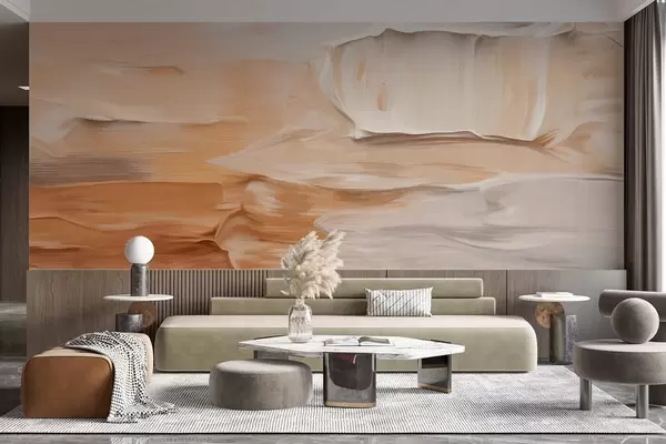 Fototapeedid Abstraktsed tekstuuriga pintslitõmbed, mis imiteerivad sooje maatoone – beeži, kreemi ja pruuni, modernne kunst Nr w09588