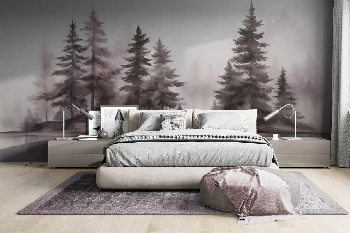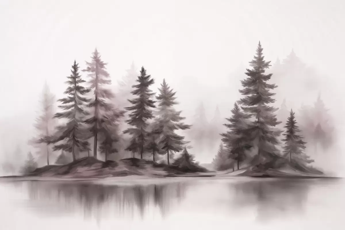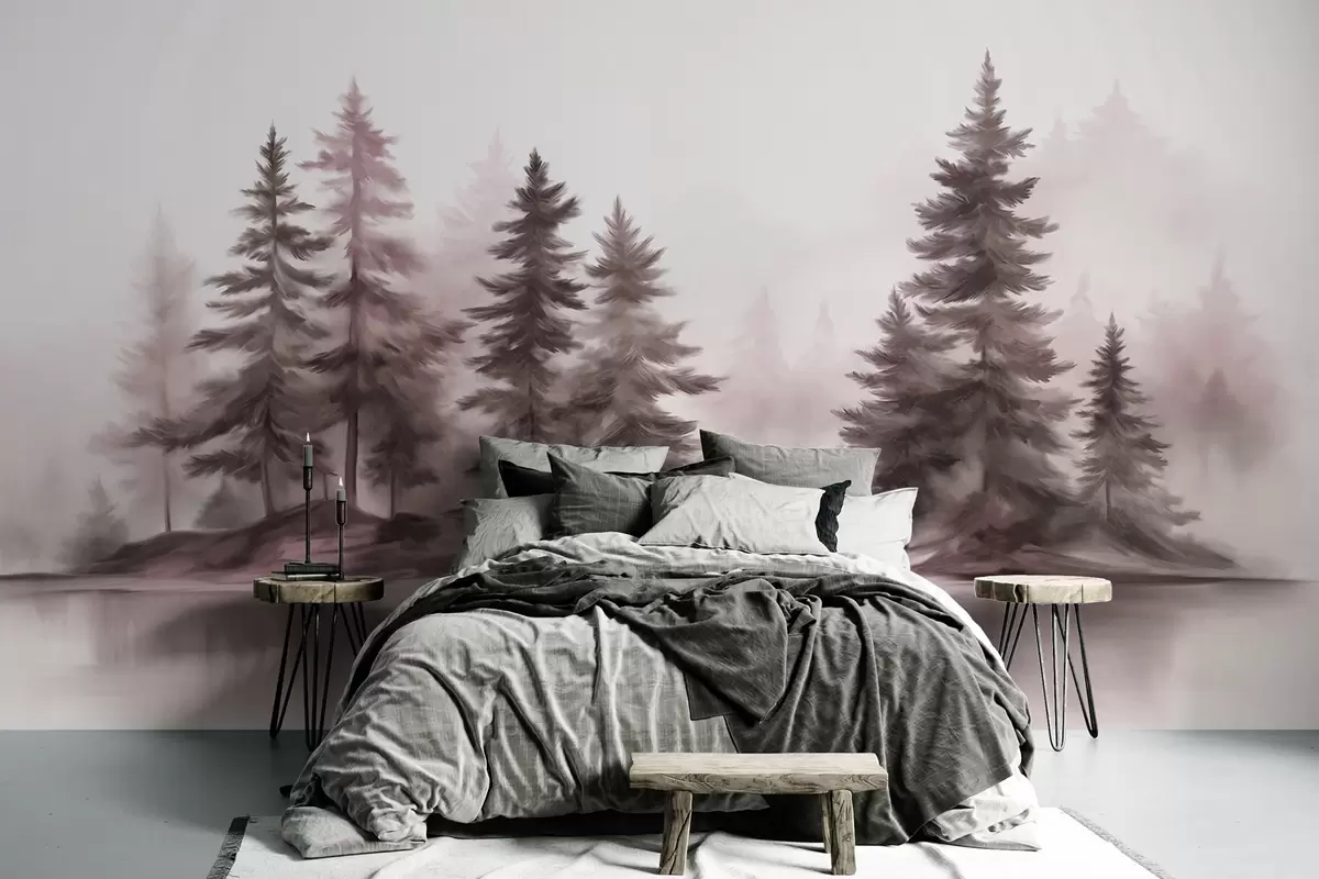 Fototapeedid Tekstuuriga udune mets kõrgetest männipuudest maalitud imitatsioon Nr w09610v1