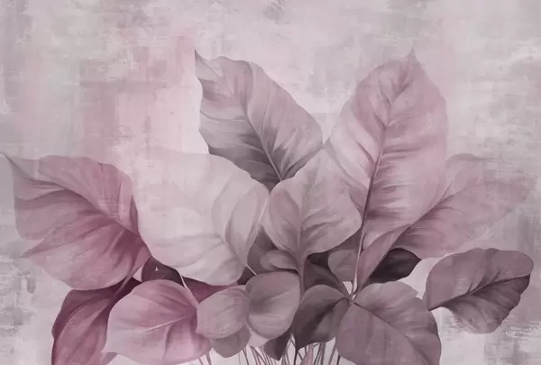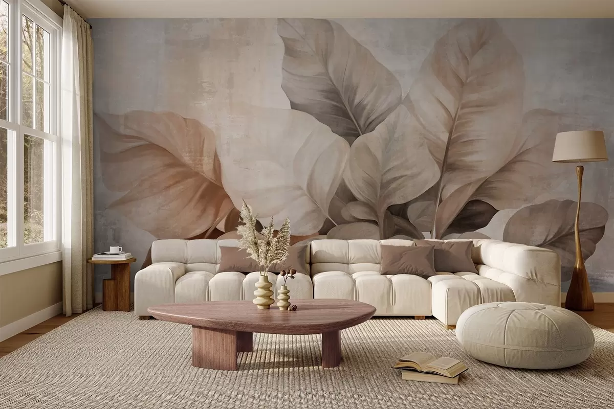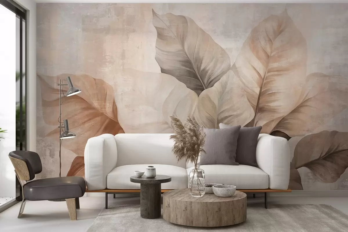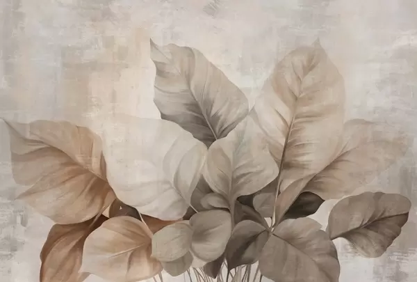 Fototapeedid Tekstuuriga maal, mis imiteerib suuri, helepruune lehti neutraalsel taustal, peenete pintslitõmmetega. Nr w09614