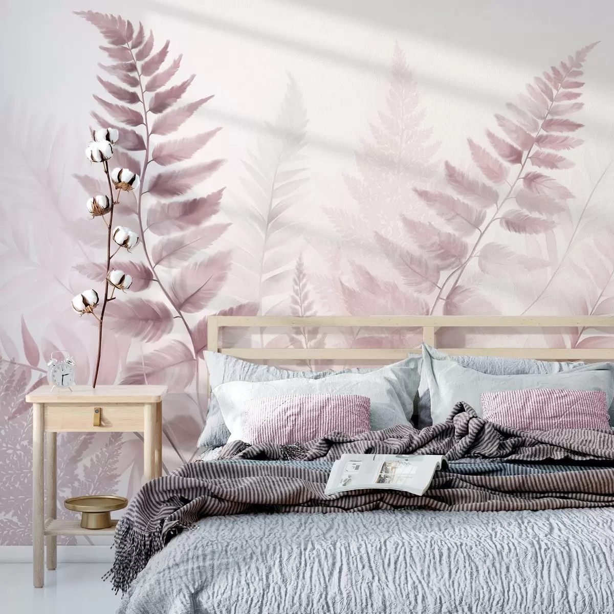 Fototapeedid Tekstuuriga kuivatatud sõnajalad erinevates roosa toonides, pehme, heleda taustaga akvarellstiilis Nr w09615v2