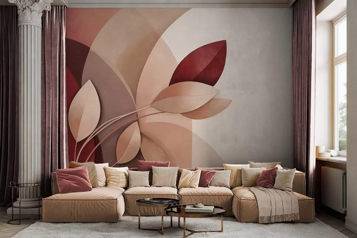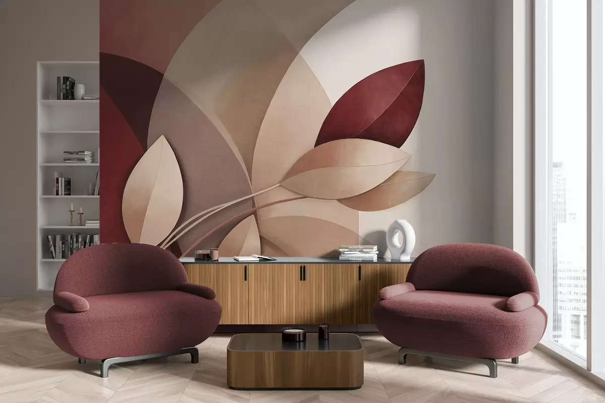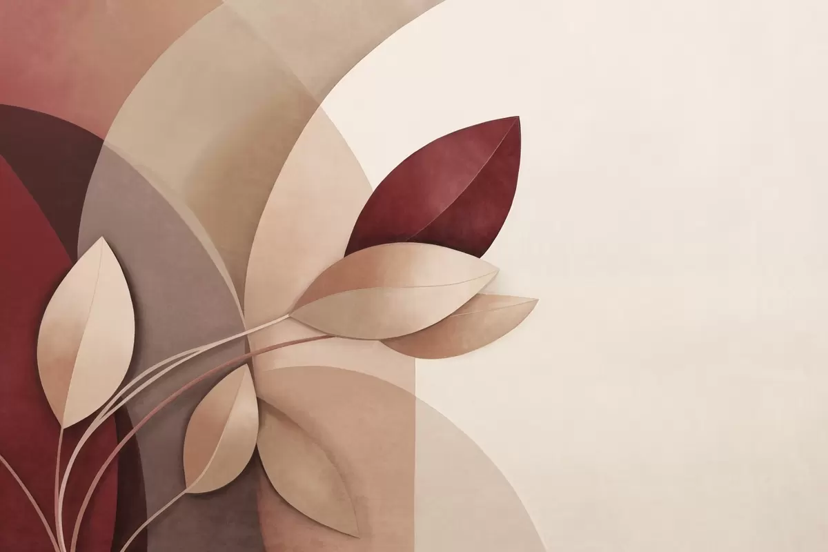 Fototapeedid Abstraktne tekstuuriga oks lehtedega pruuni, beeži ja punase toonides, abstraktsete kujundite taustal Nr w09618
