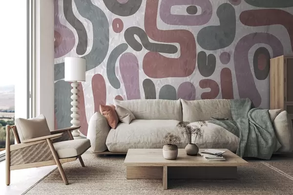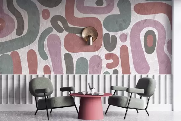 Fototapeedid Abstraktsed tekstuuriga kujundid vaoshoitud roosa, rohelise ja halli toonides, tekstuuriga taustal, modernne kunst Nr w09622