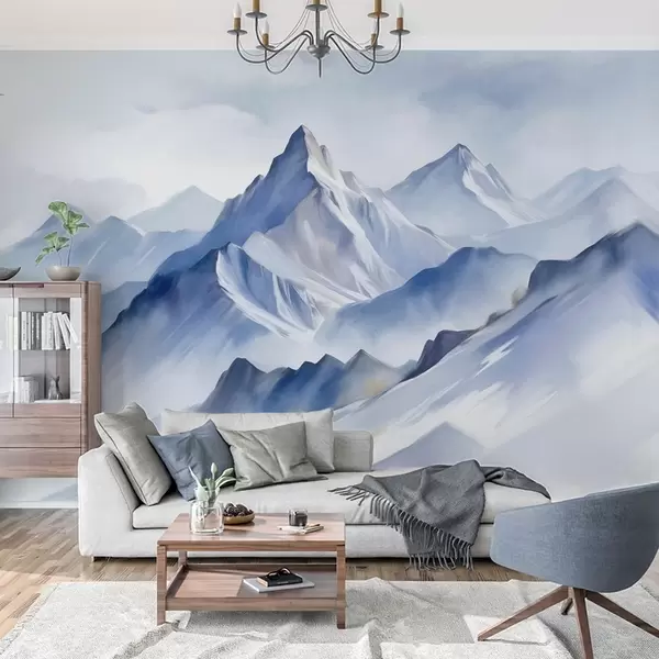 Fototapeedid Tekstuuriga lumised mäed pehme akvarelliefektiga ning sinise ja valge värvipalettiga Nr w09630