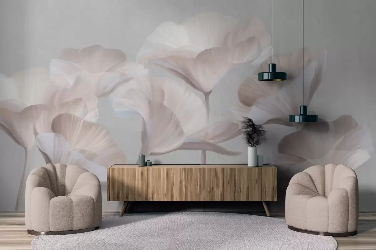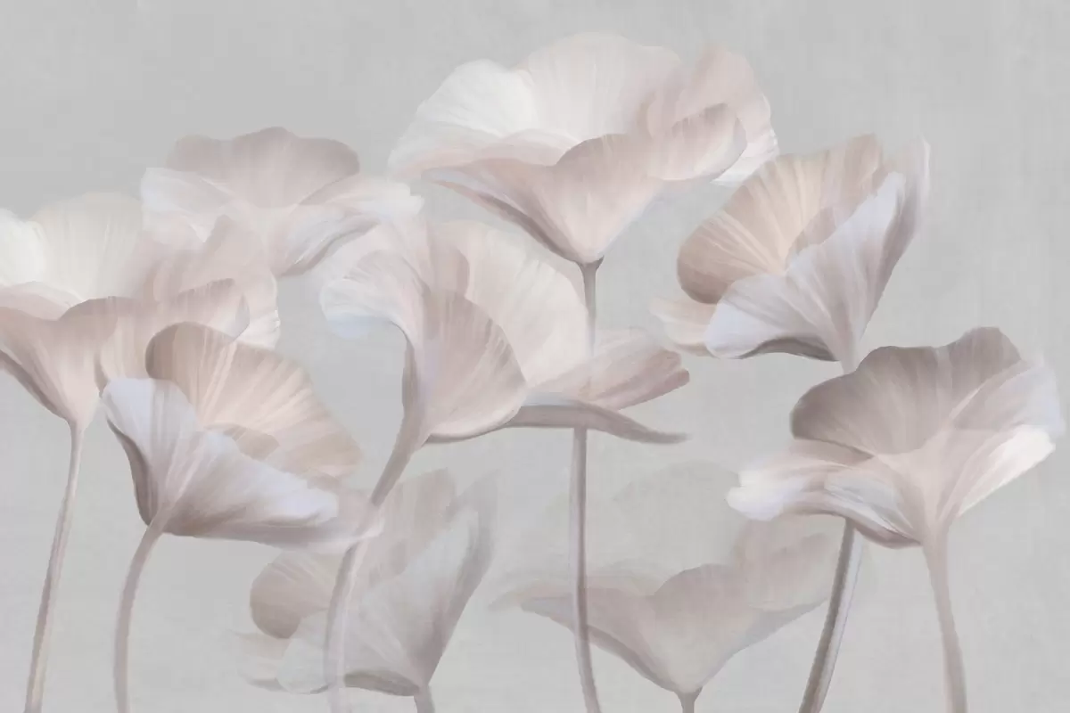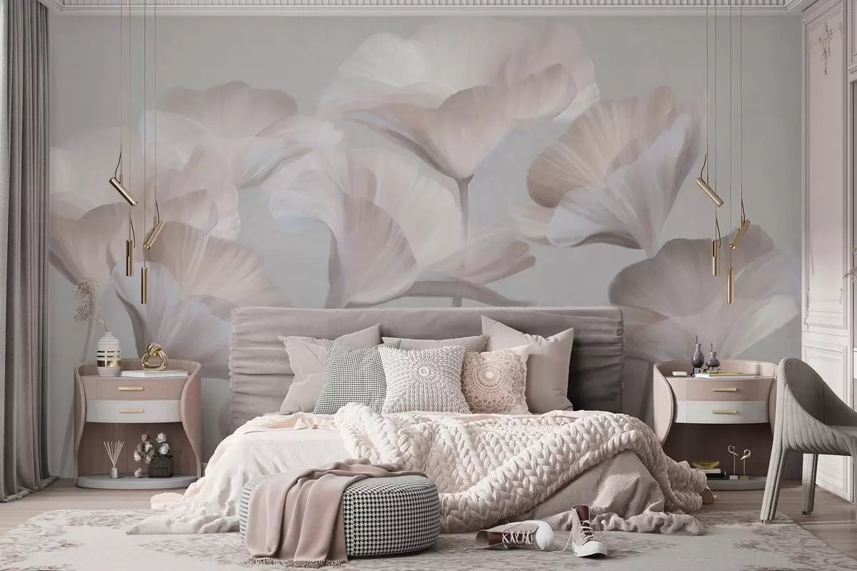 Fototapeedid Helevirsiku tekstuuriga läbipaistvad lootoseõied õrnad õielehed vaoshoitud halli taustal Nr w09640