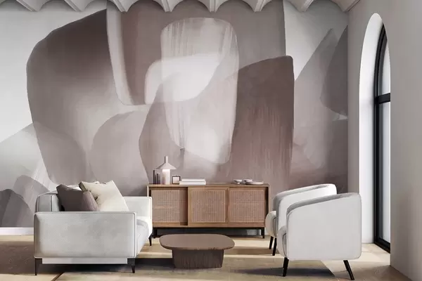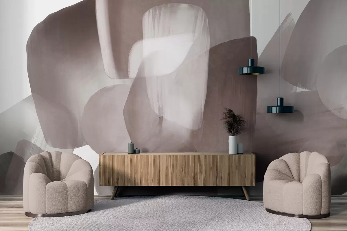 Fototapeedid Abstraktsed tekstuuriga kujundid vaoshoitud burgundia ja halli värvides, pehmetes servades ja üksteisega kattuvates kihtides. Nr w09642v2