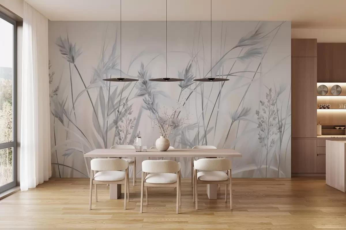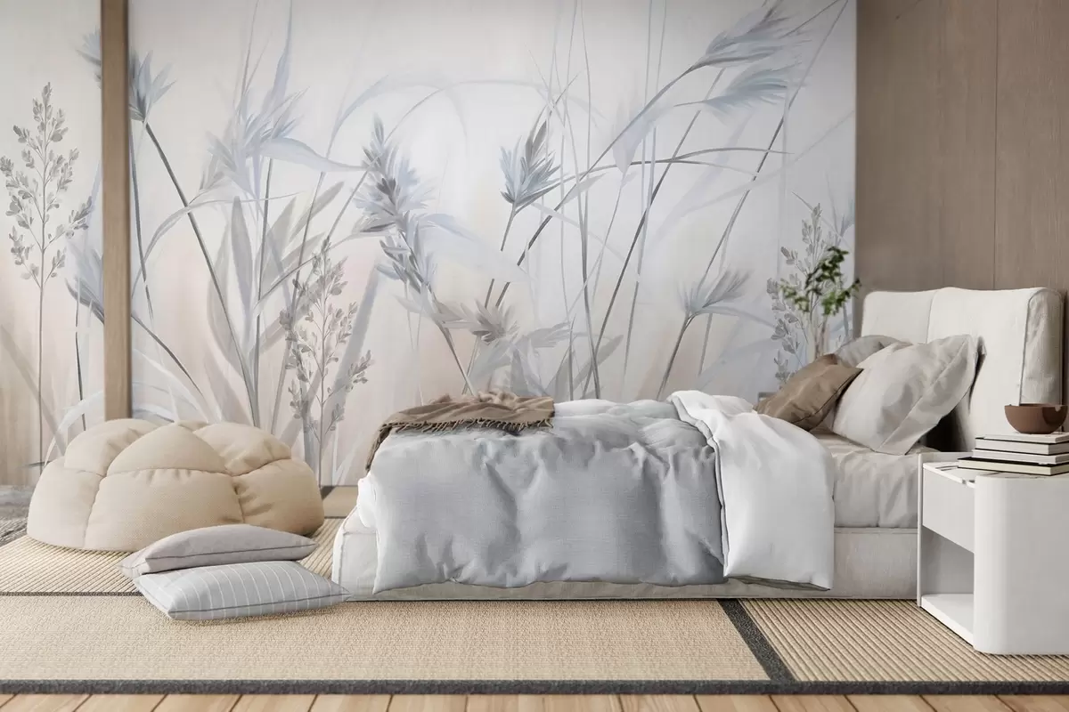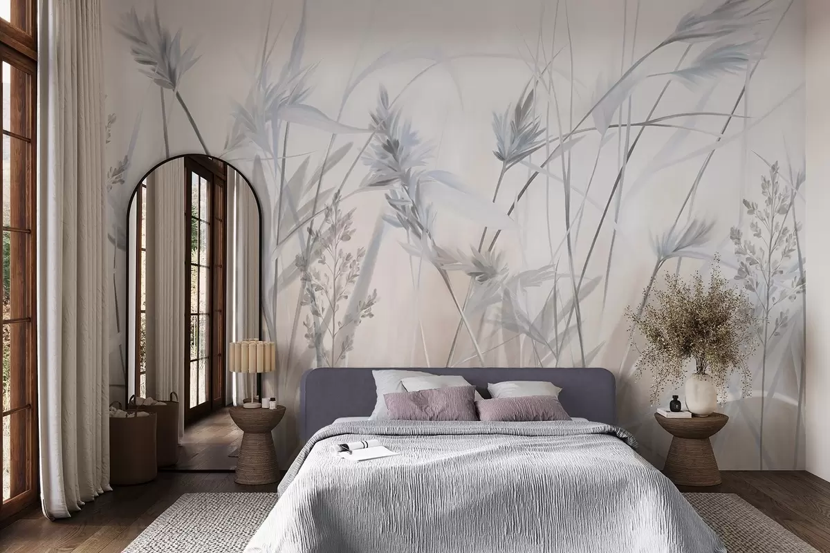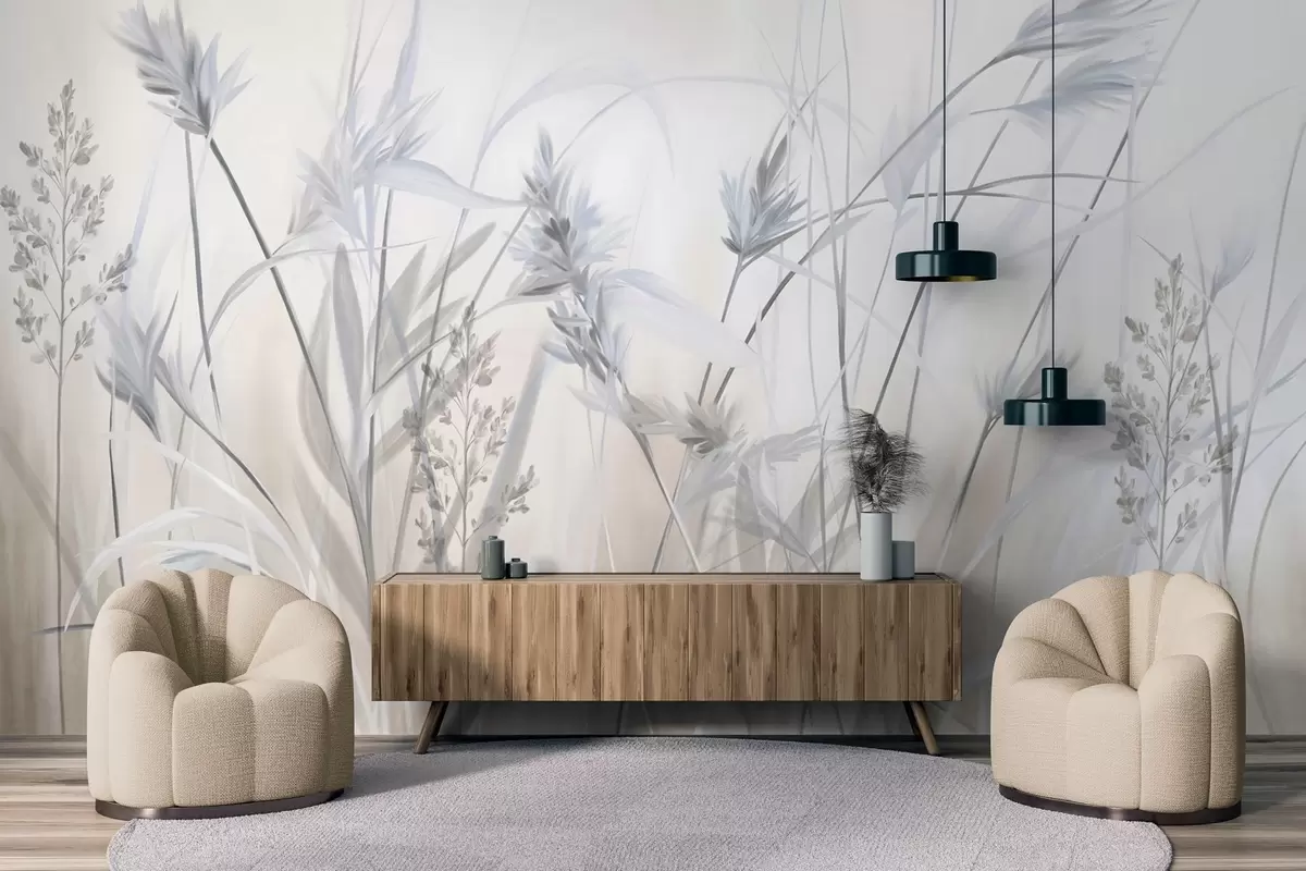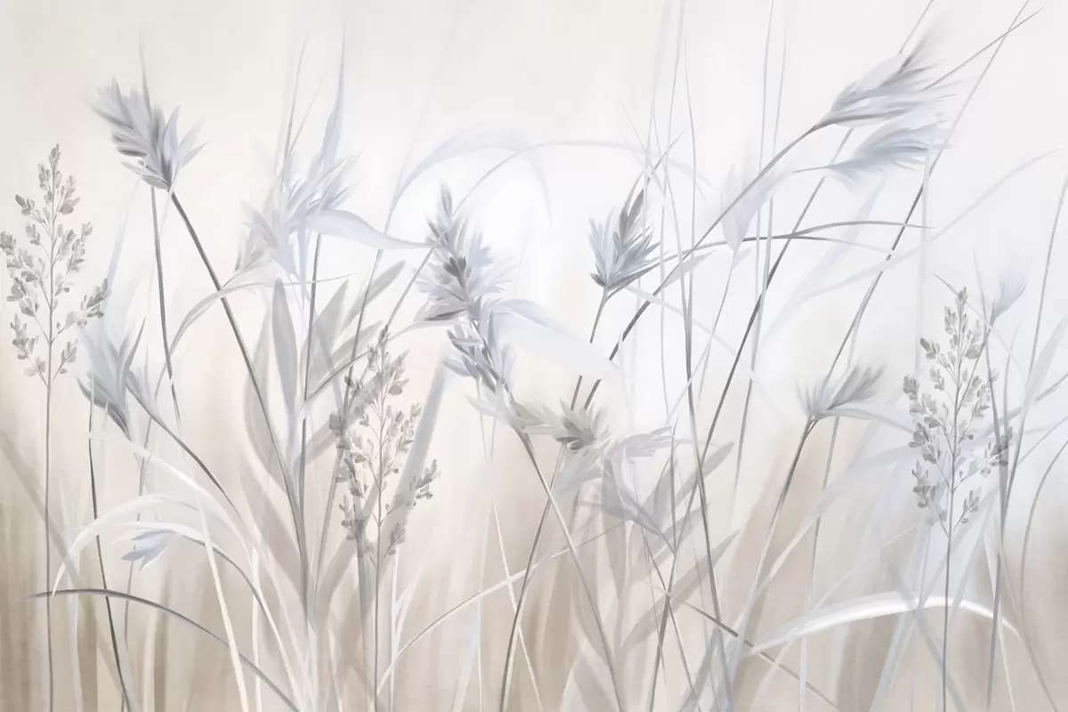 Fototapeedid Kõrged, kuivad rohtu varred sulgkergete tippudega, pehmed, udused valged ja beežid taustad Nr w09652v1
