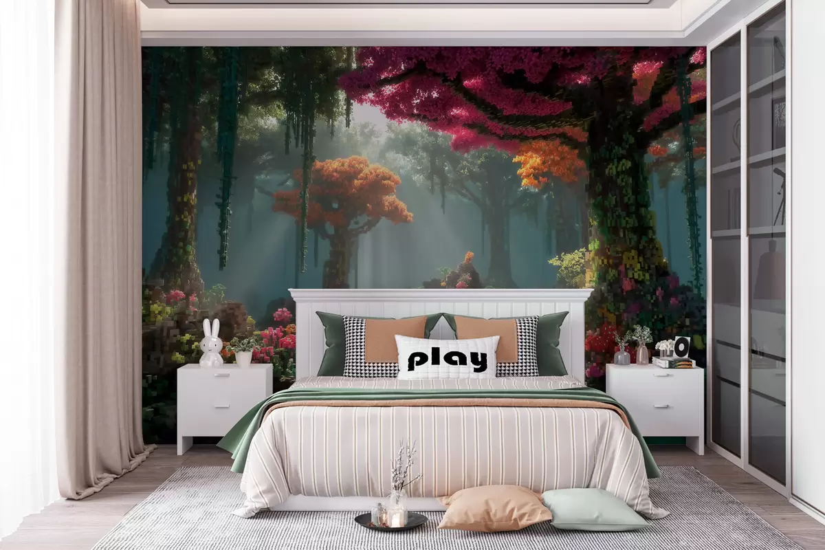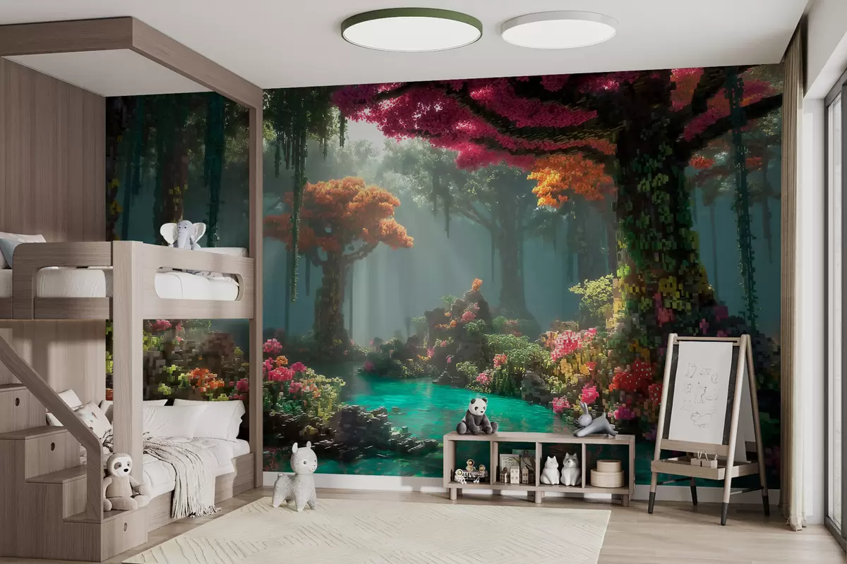 Fototapeedid Videomängudest inspireeritud pikselne lummav mets Nr w09683