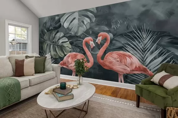 Fototapeedid Paar flamingot troopiliste taimede keskel Nr w09687
