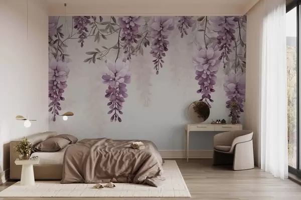 Fototapeedid Õrn, suured lavendlioksad ripuvad seinal, imitatsioon akvarell Nr w09690