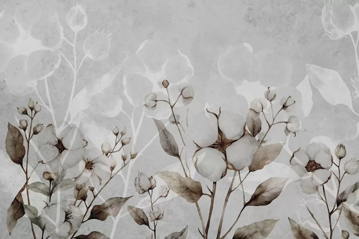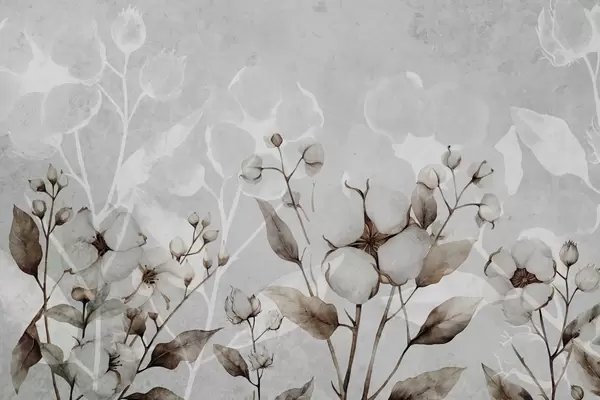 Fototapeedid Suured puuvillased lilled helerohelisel taustal Nr w09691