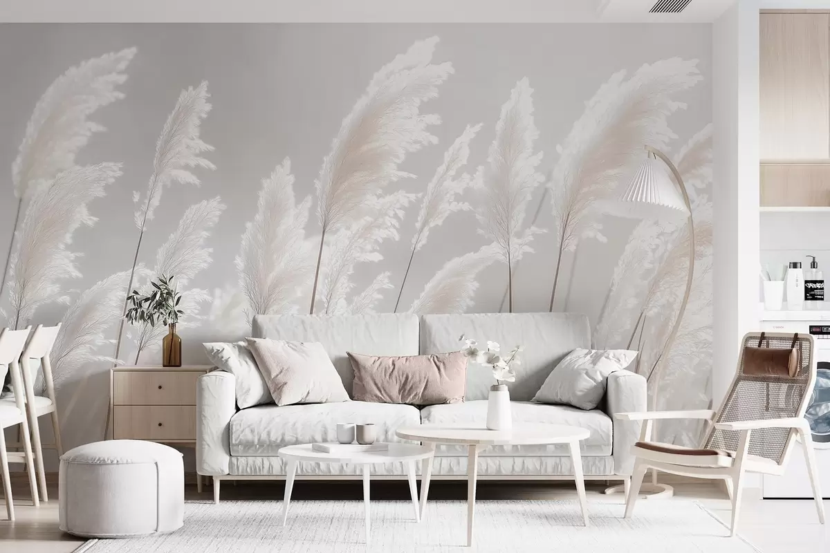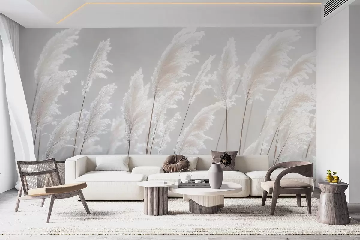 Fototapeedid Pehme valge pampasrohi õrnas hommikupäikeses Nr w09717