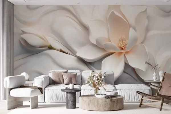 Fototapeedid Kolmemõõtmeline valge magnoolia marmorist tekstuuri imitatsiooniga reljeefis Nr w09729