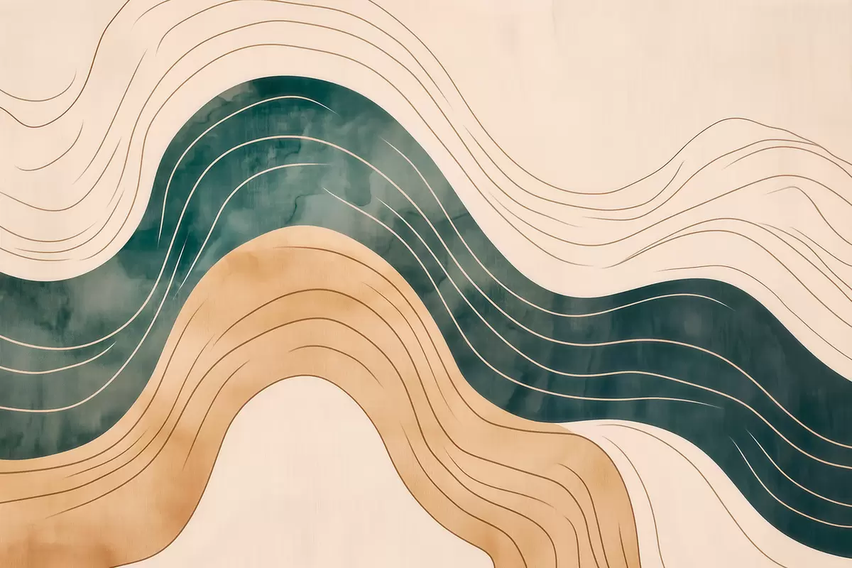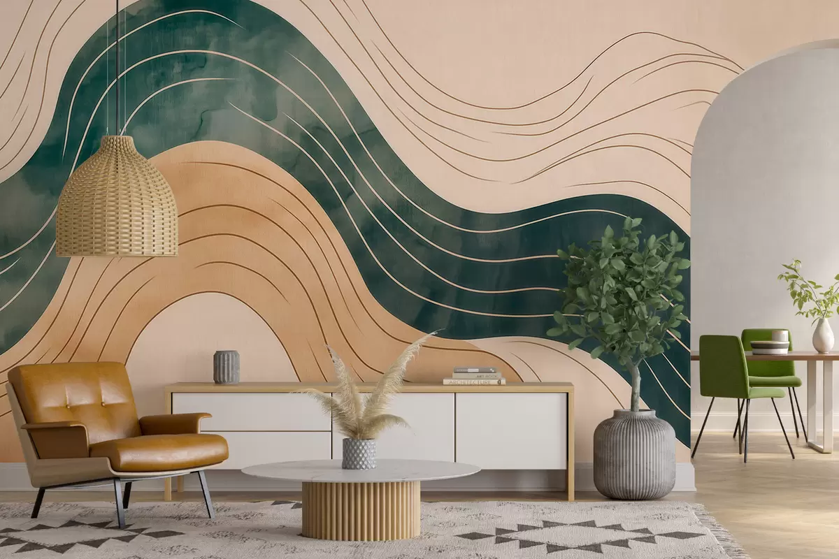 Fototapeedid Loodusliku liiva ja smaragdroheliste toonide abstraktsed lainelised jooned Nr w09732