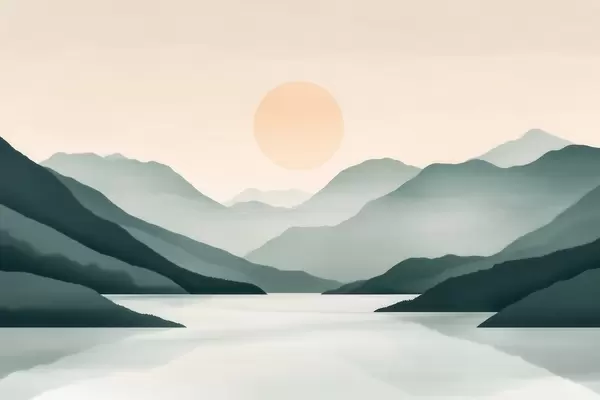 Fototapeedid Vaikne mägimaastik päikesega järve kohal Nr w09735