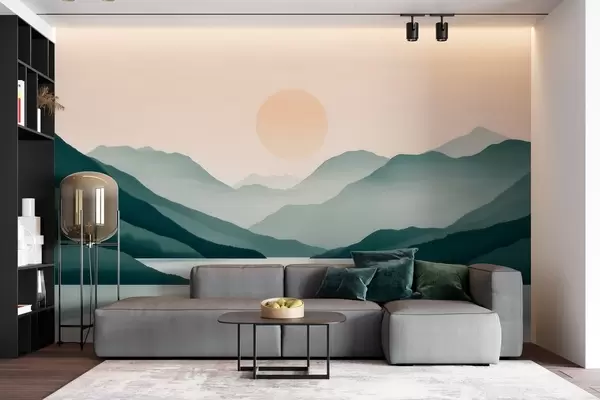 Fototapeedid Vaikne mägimaastik päikesega järve kohal Nr w09735