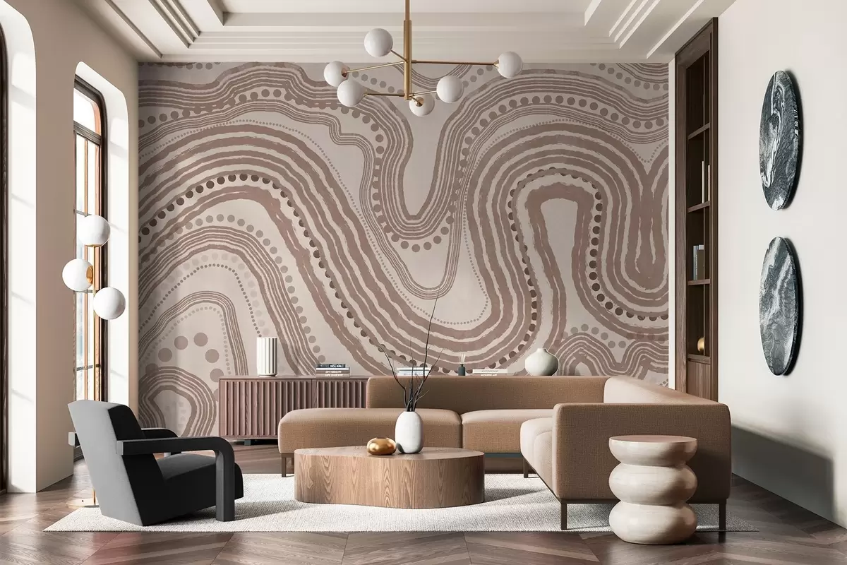 Fototapeedid Abstraktsed pruunid ja beežid lainelised jooned ja punktid, modernne tekstuuriga kunst Nr w09747v1