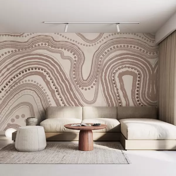 Fototapeedid Abstraktsed pruunid ja beežid lainelised jooned ja punktid, modernne tekstuuriga kunst Nr w09747v1