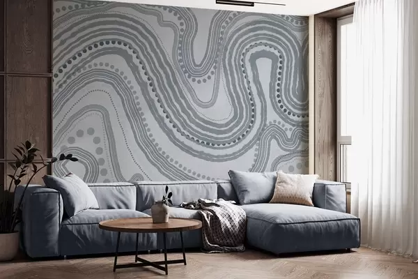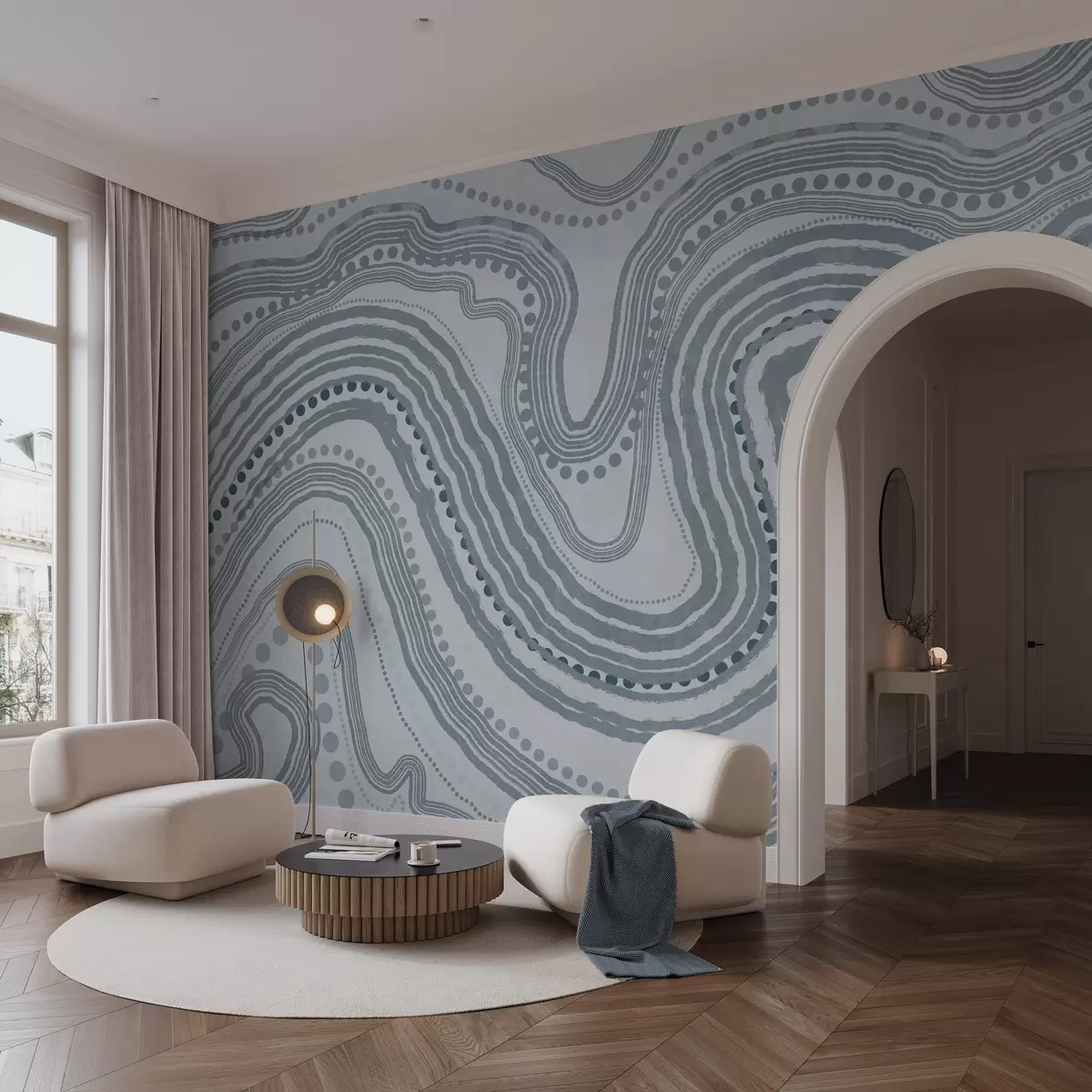 Fototapeedid Abstraktsed sinised lainelised jooned ja punktid, modernne tekstuuriga kunst Nr w09747v3