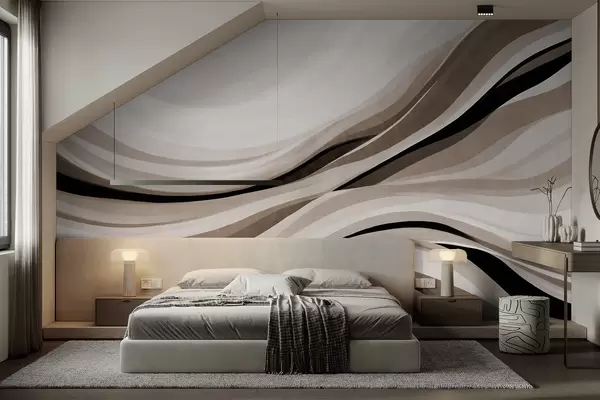 Fototapeedid Abstraktsed lainelised jooned beeži ja musta toonides heledal taustal, tekstuuriga kunst Nr w09748