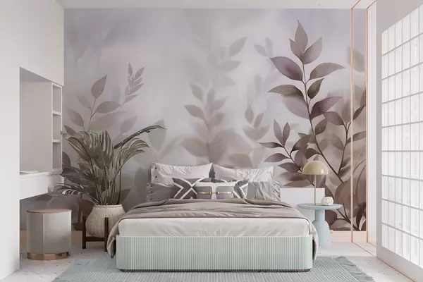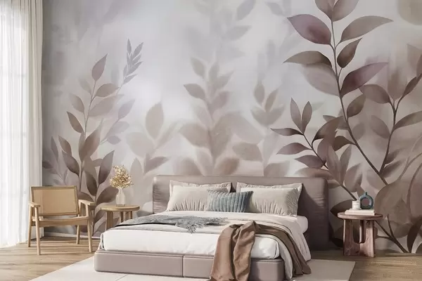 Fototapeedid Õrnad oksad vaoshoitud pruuni ja beeži lehtedega, akvarellmaalistiilis, tekstuuriga kunst Nr w09750