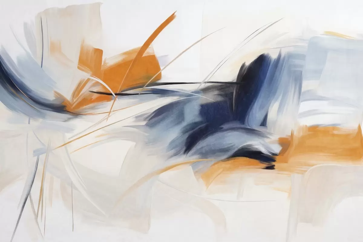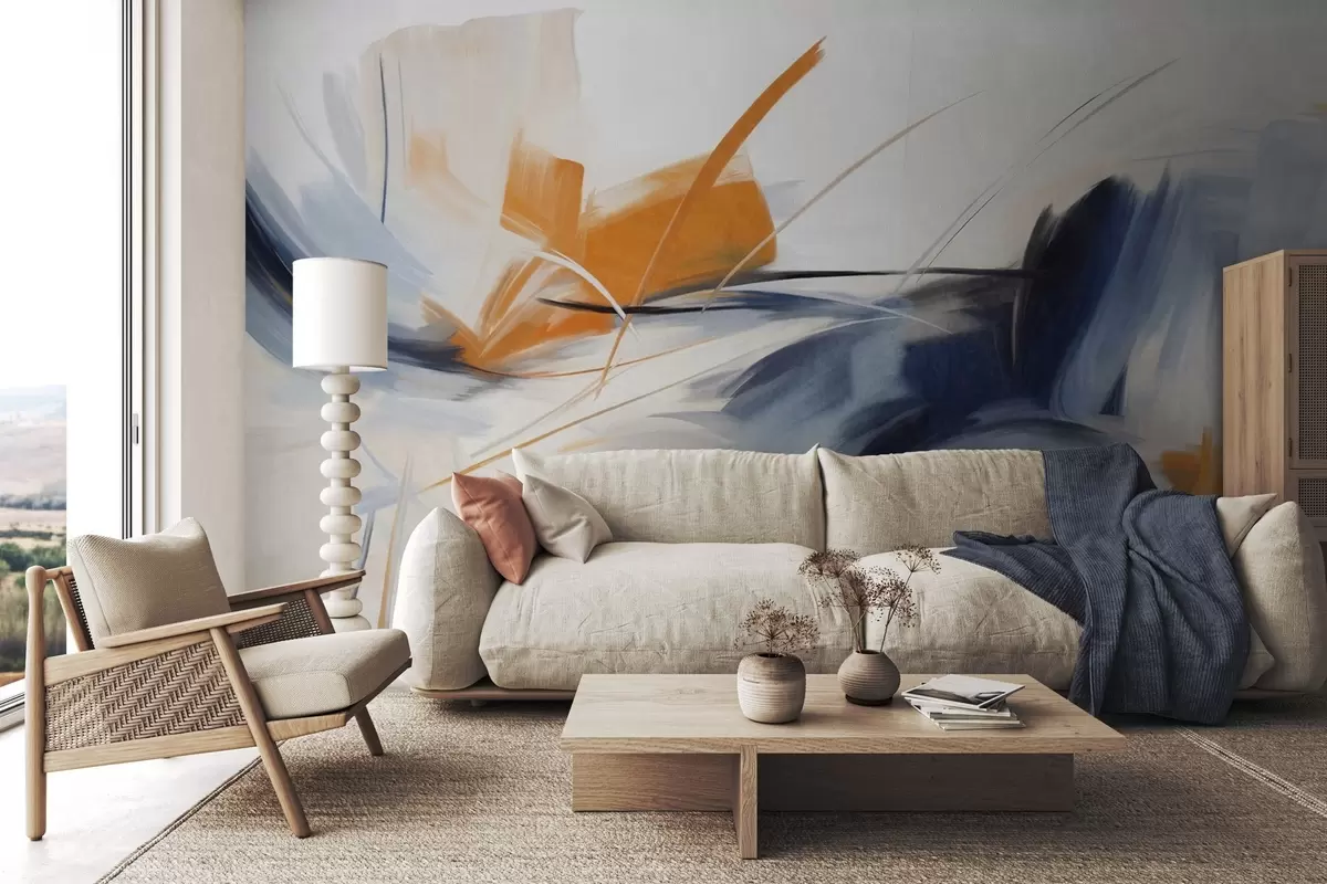 Fototapeedid Abstraktne maalistiil oranži ja sinise tekstuuriga pintslitõmmetega Nr w09755
